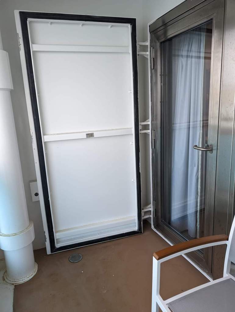 When there is bad weather expected or when refuelling in ports like Barcelona, then they attach the metal covers to the main door to protect it: