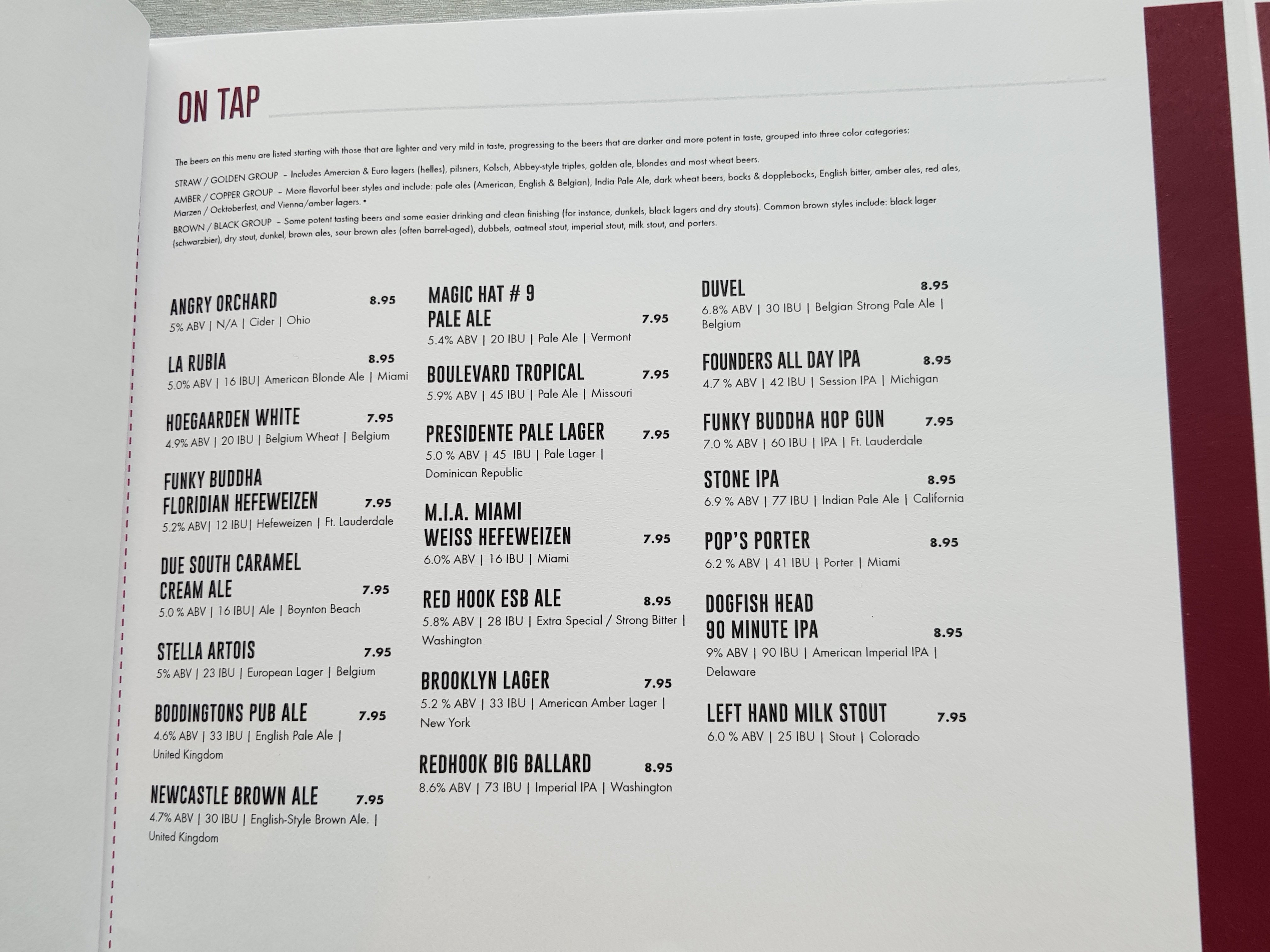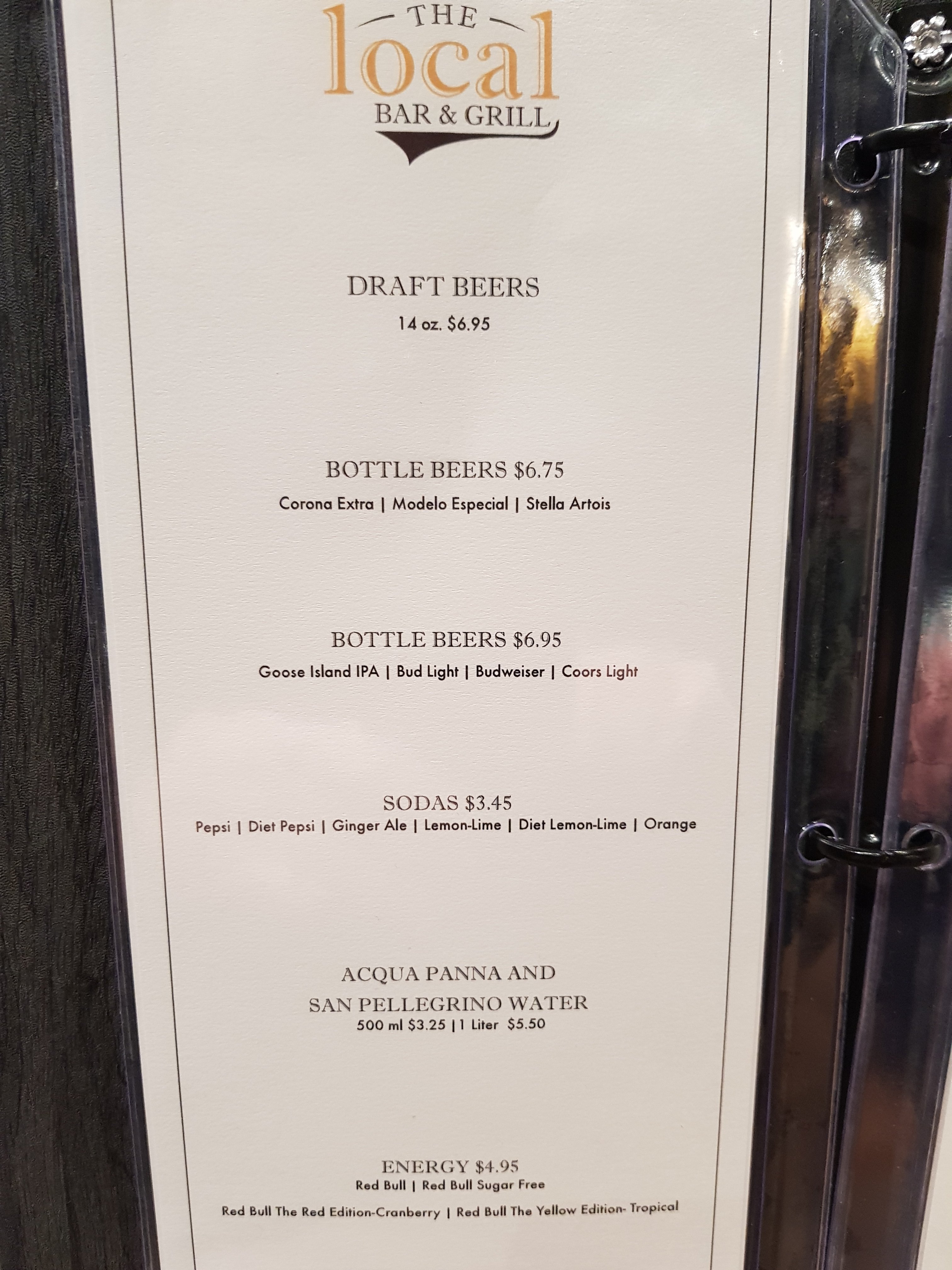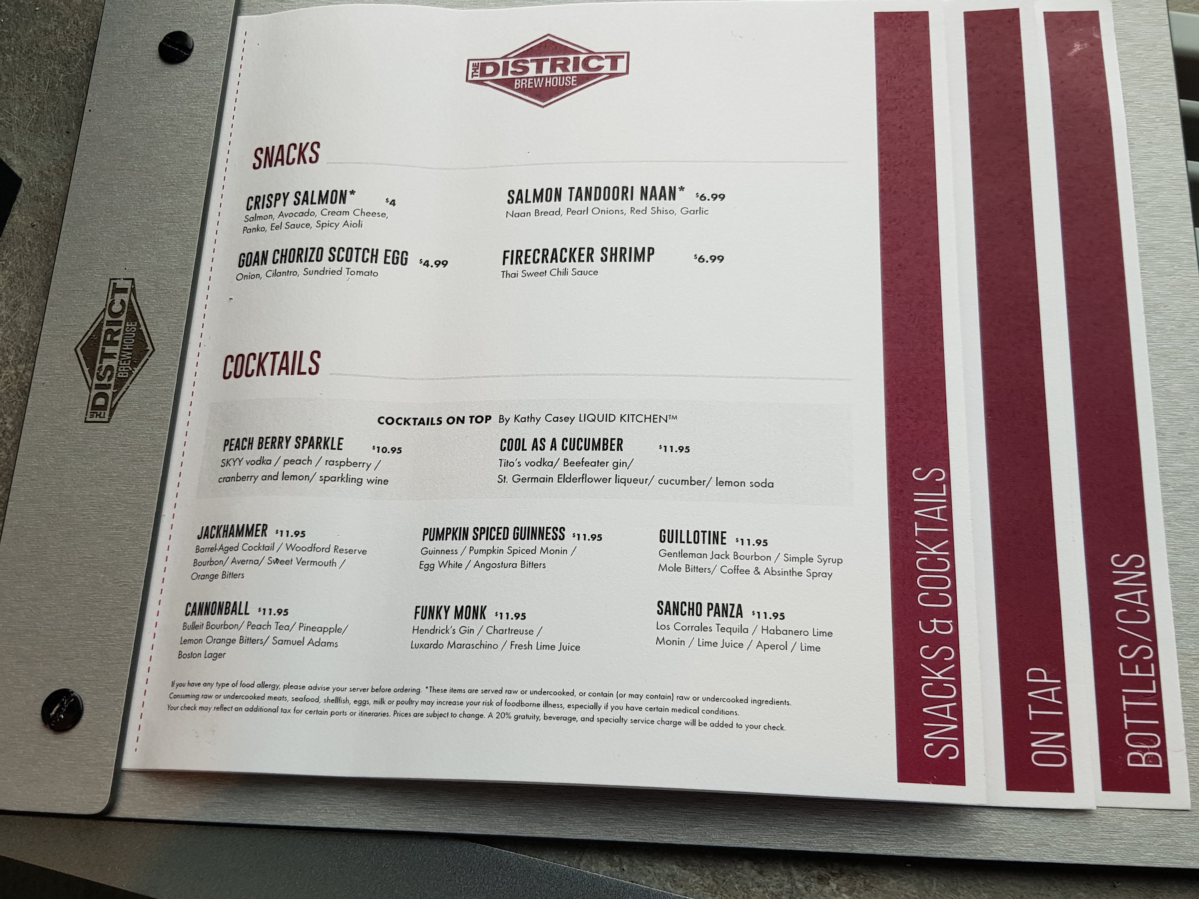 Next, went up to deck 8 to find The District Brewhouse. Here, the menu had been redesigned: