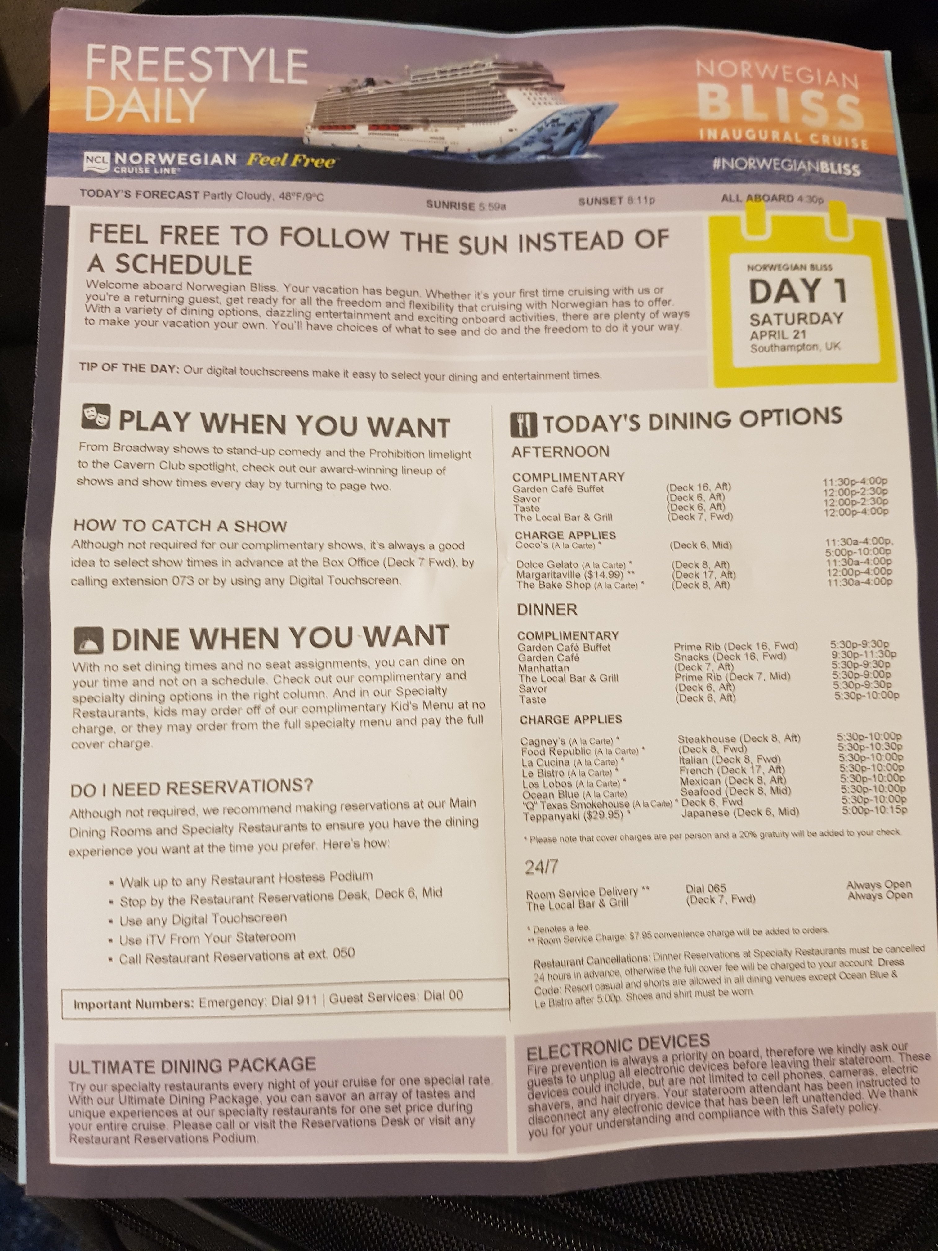 Chris and I were on the Norwegian Bliss Inaugural Transatlantic cruise from Southampton to New York City. We posted pictures and information as we cruised.