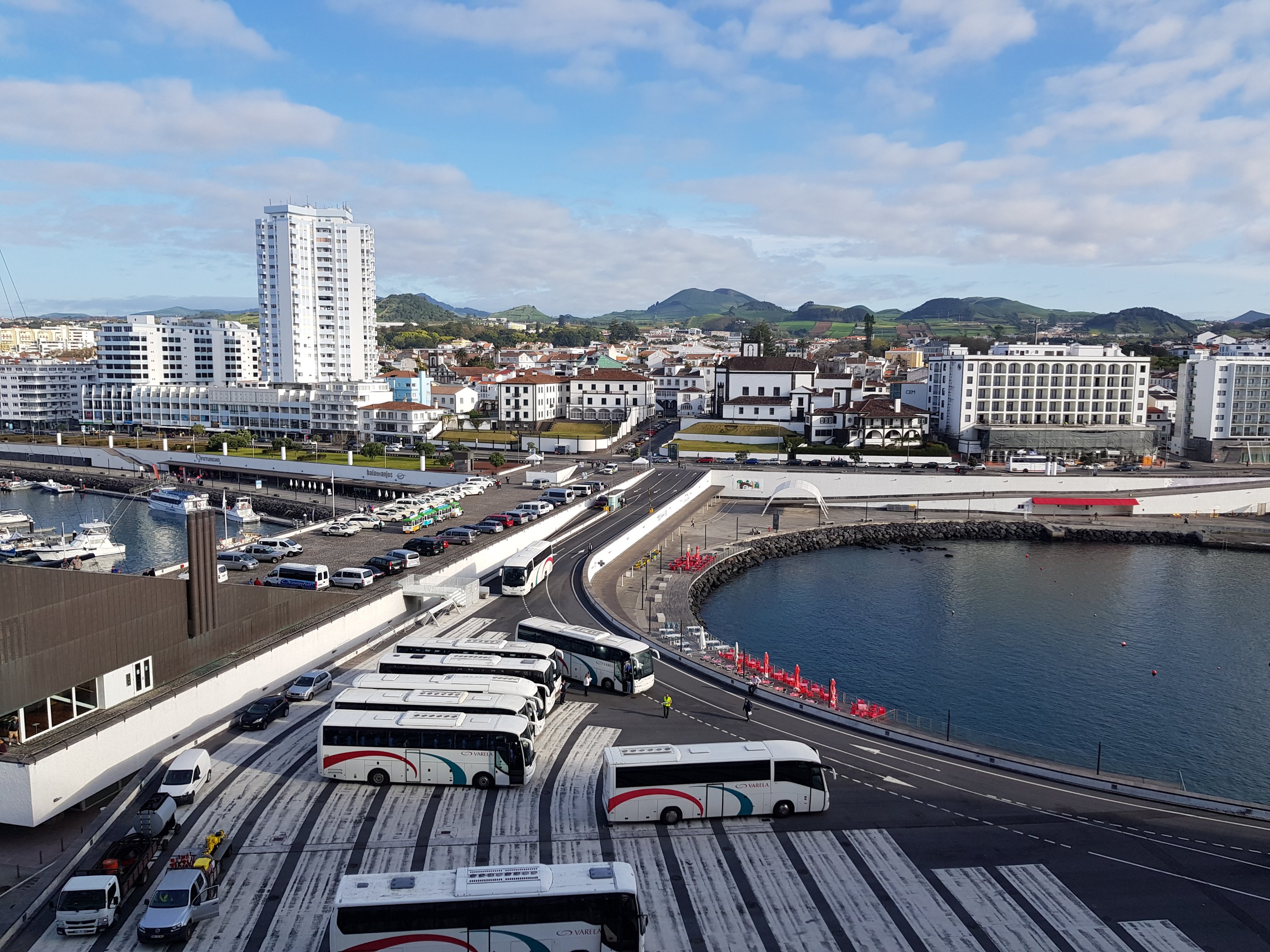 This morning we found land for the first time! The ship backed carefully into the port of Ponta Delgada on the Azores just as we were eating breakfast.