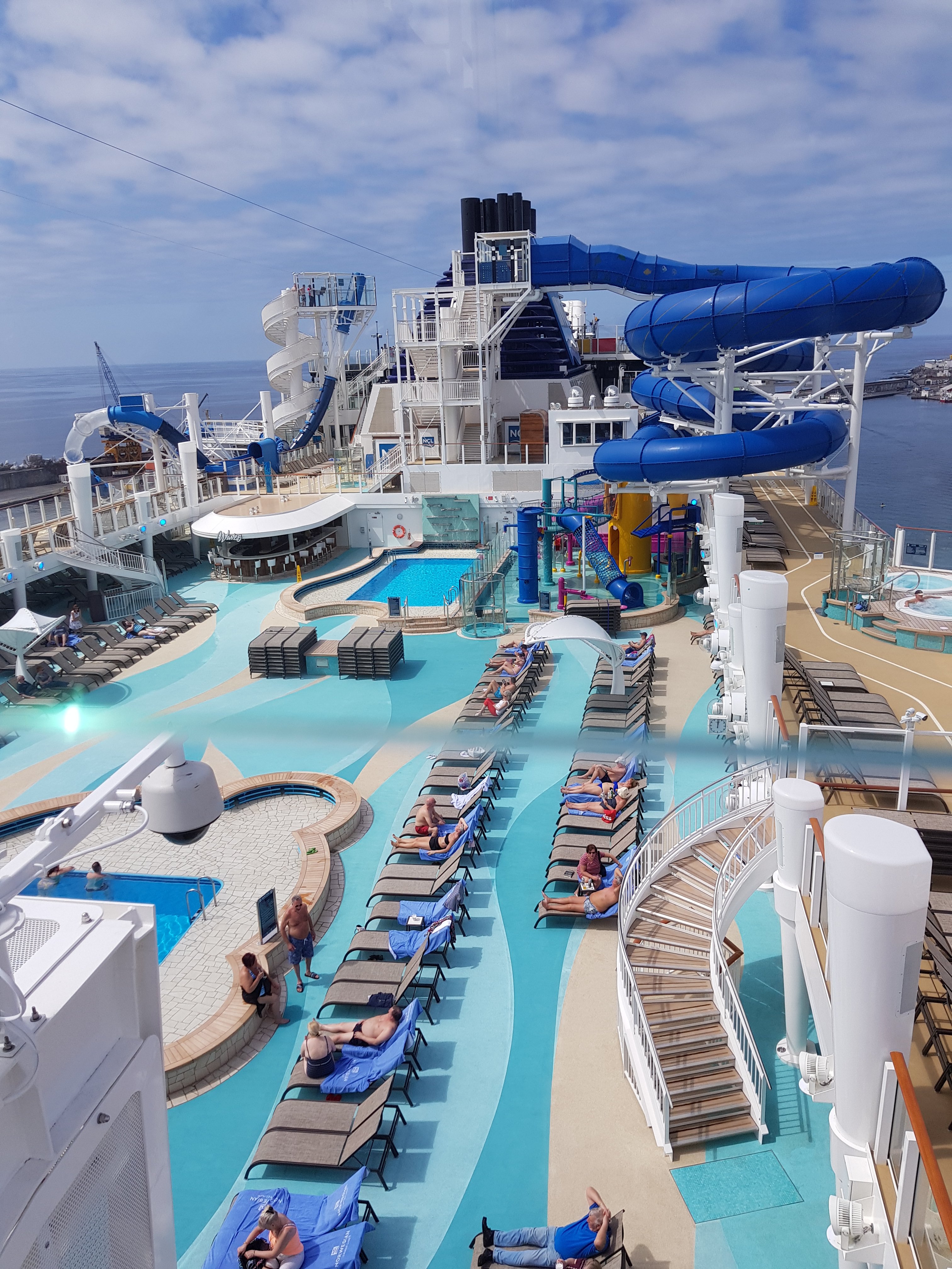 Chris caught the sun and was worried he had got sunstroke so we headed back to the ship so he could lay down in the dark cabin while I walked around deck 17 taking some pics in the sunshine.