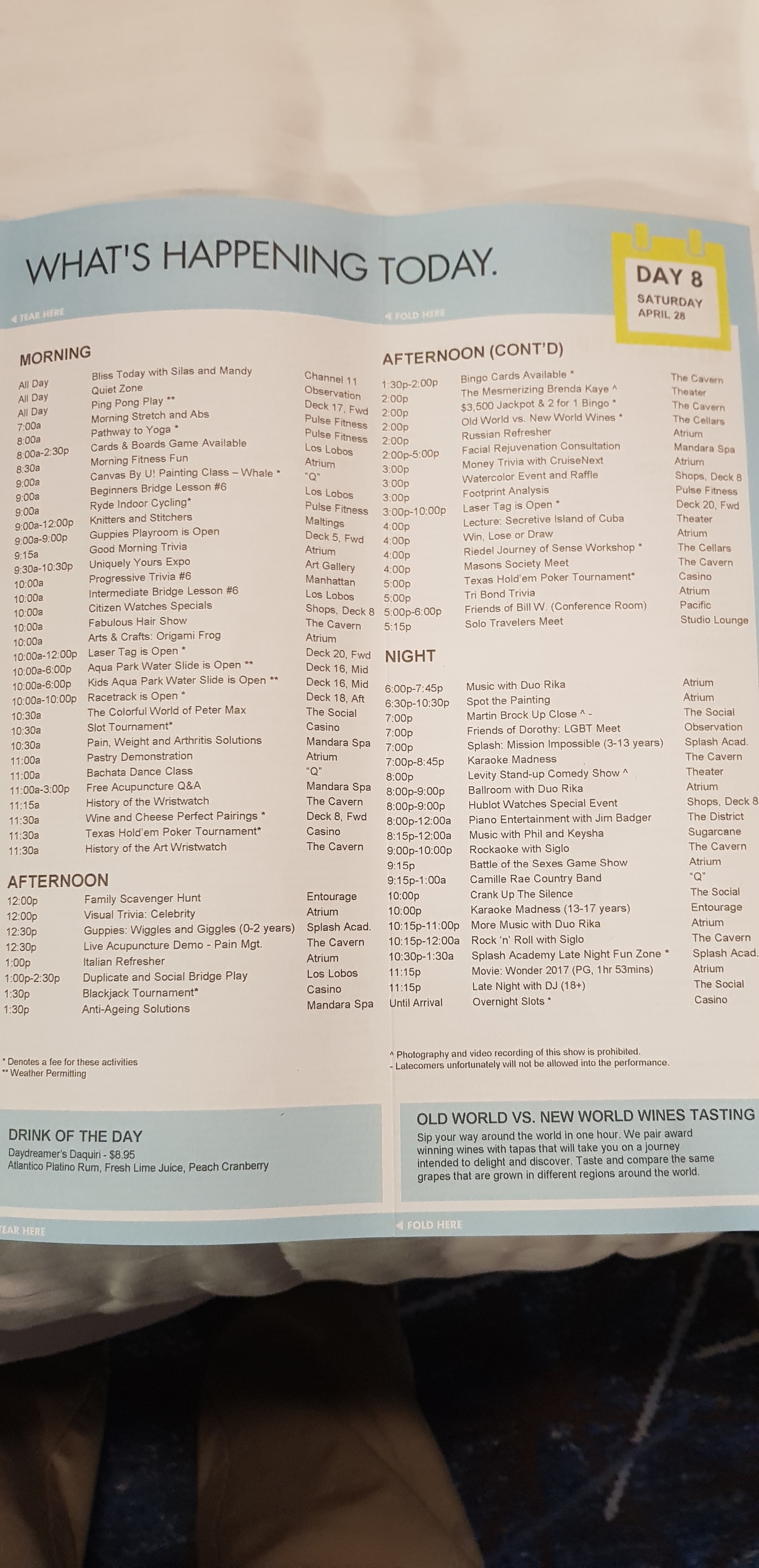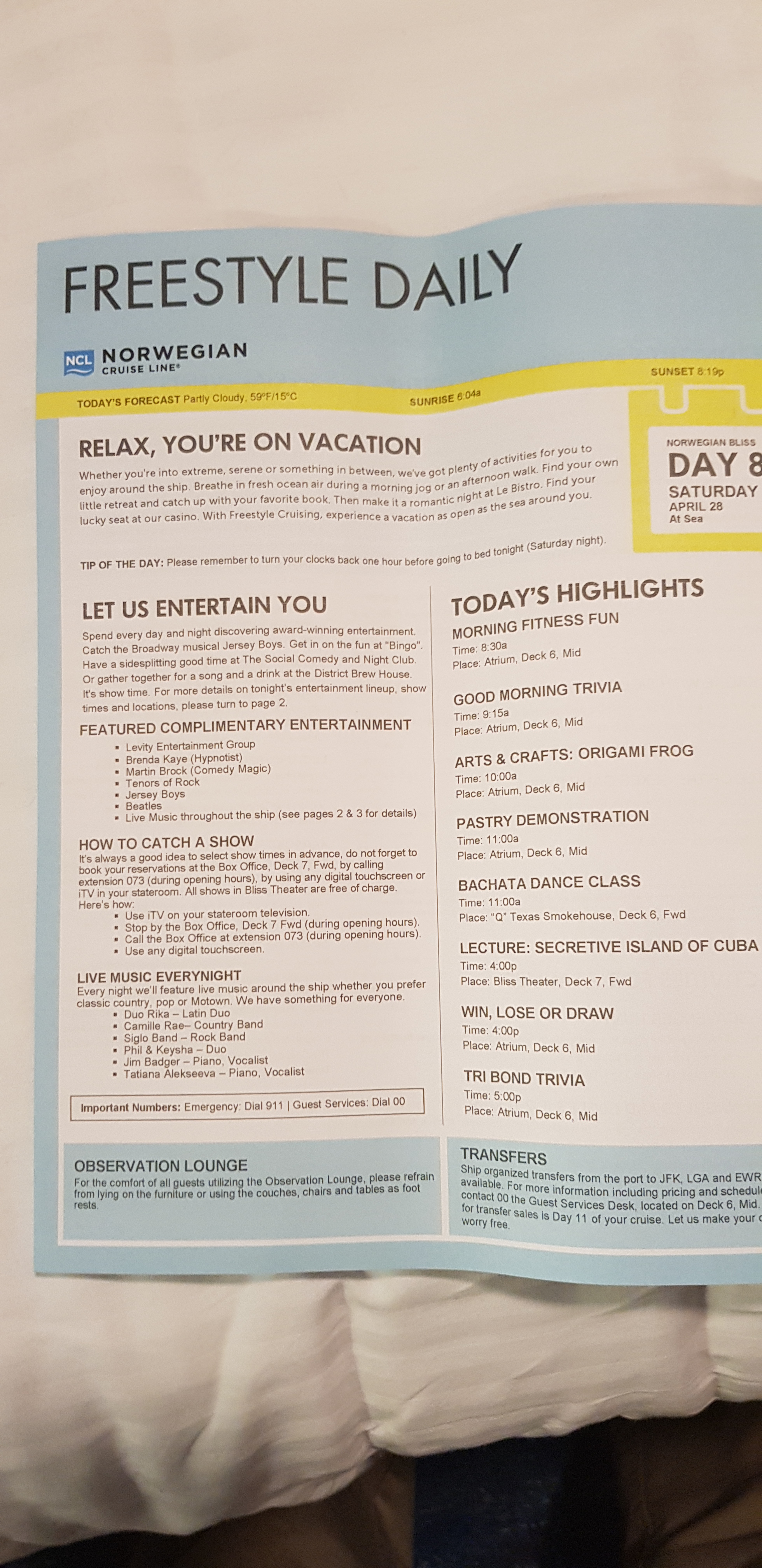 It’s Day 8 of the Inaugural Transatlantic cruise on Norwegian Bliss.