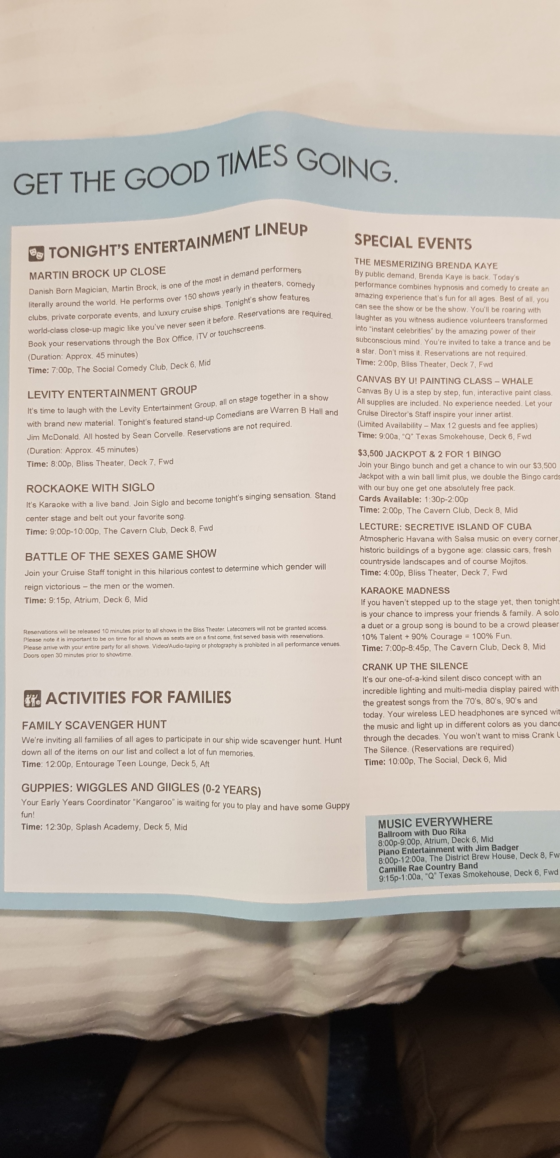 Here, we met up with the other members who had signed up for this event where you buy a gift that is personal to you and then deliver it to a randomly assigned stateroom in secret. The recipient then needs to try and guess who sent it.