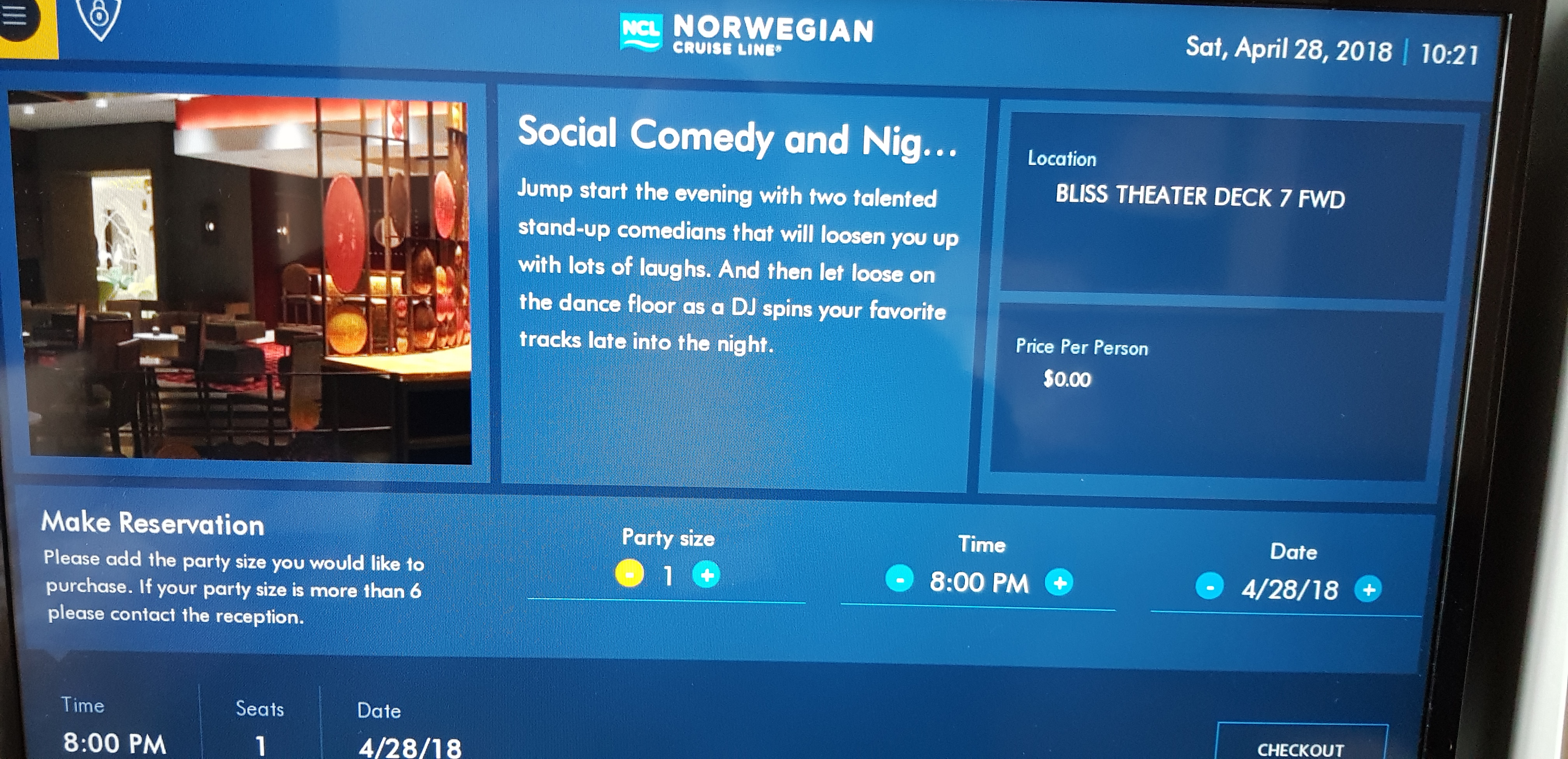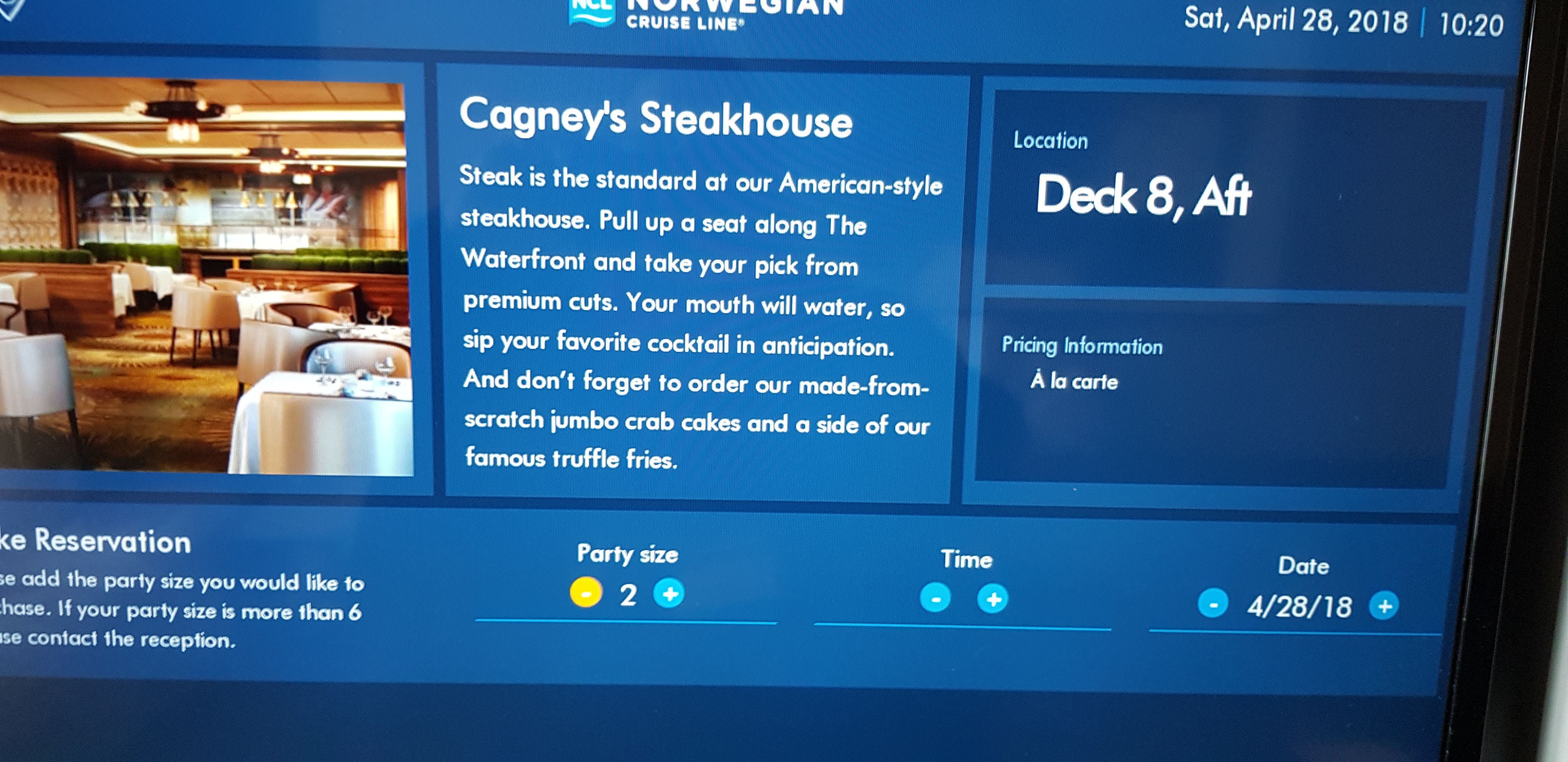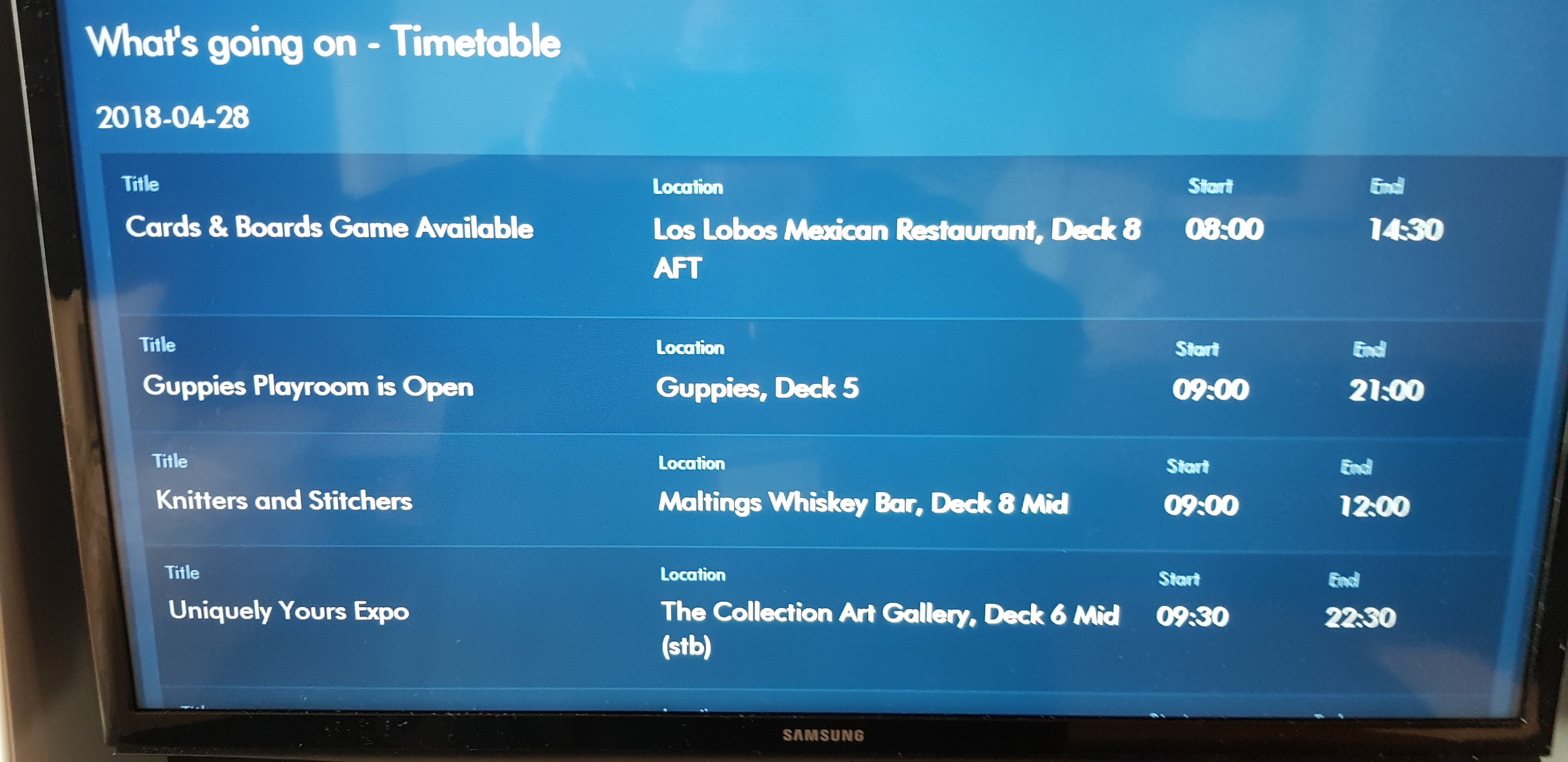 What would have been helpful was to have the My Calendar option on the home screen as well as being available on the Menu only. We didn’t find it for days. It only had our bookings made on the ship and sometimes these were cleared down and empty for a few hours!