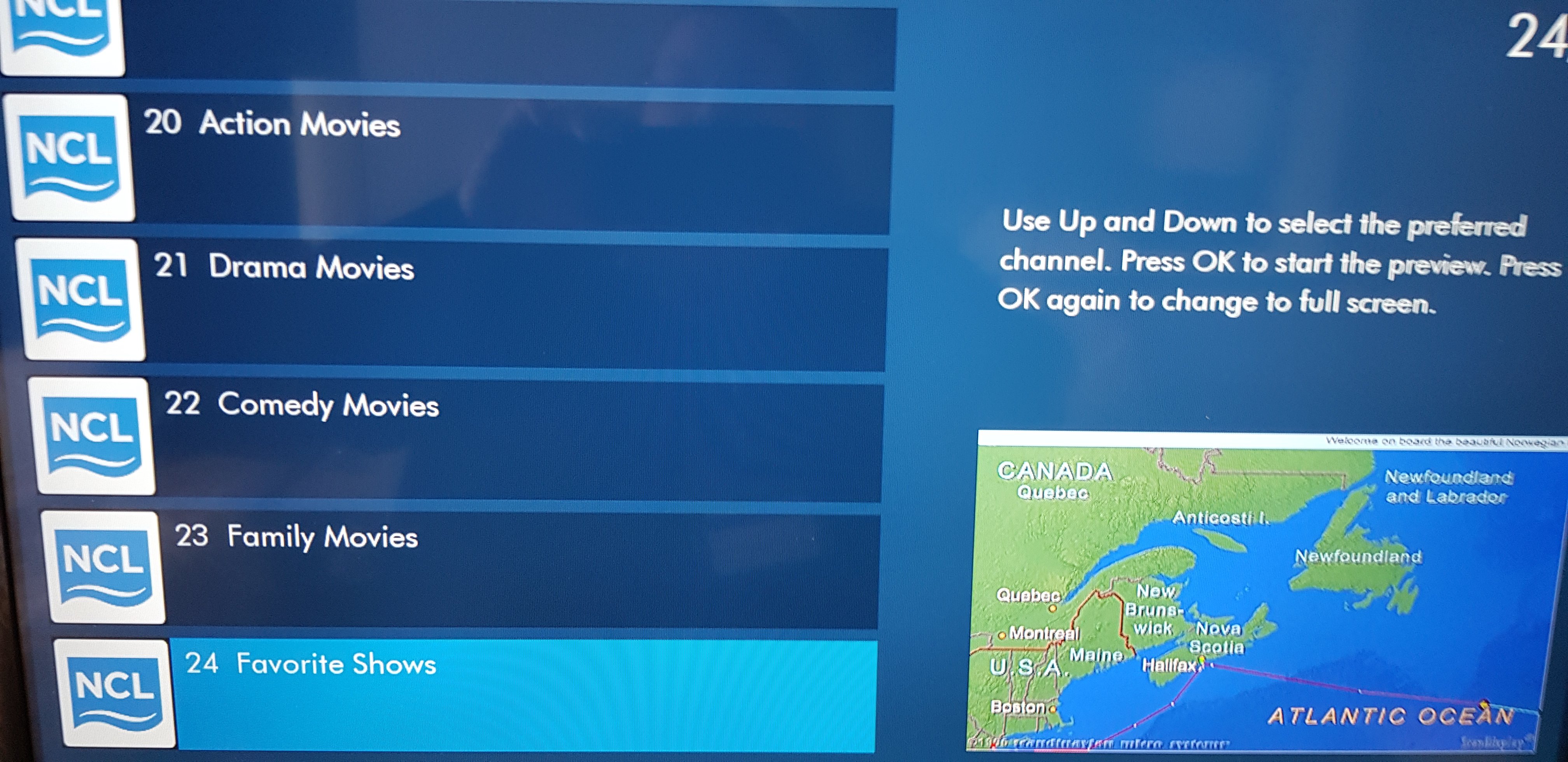 On the subject of the Norwegian Bliss TV here are some pictures on what to expect.