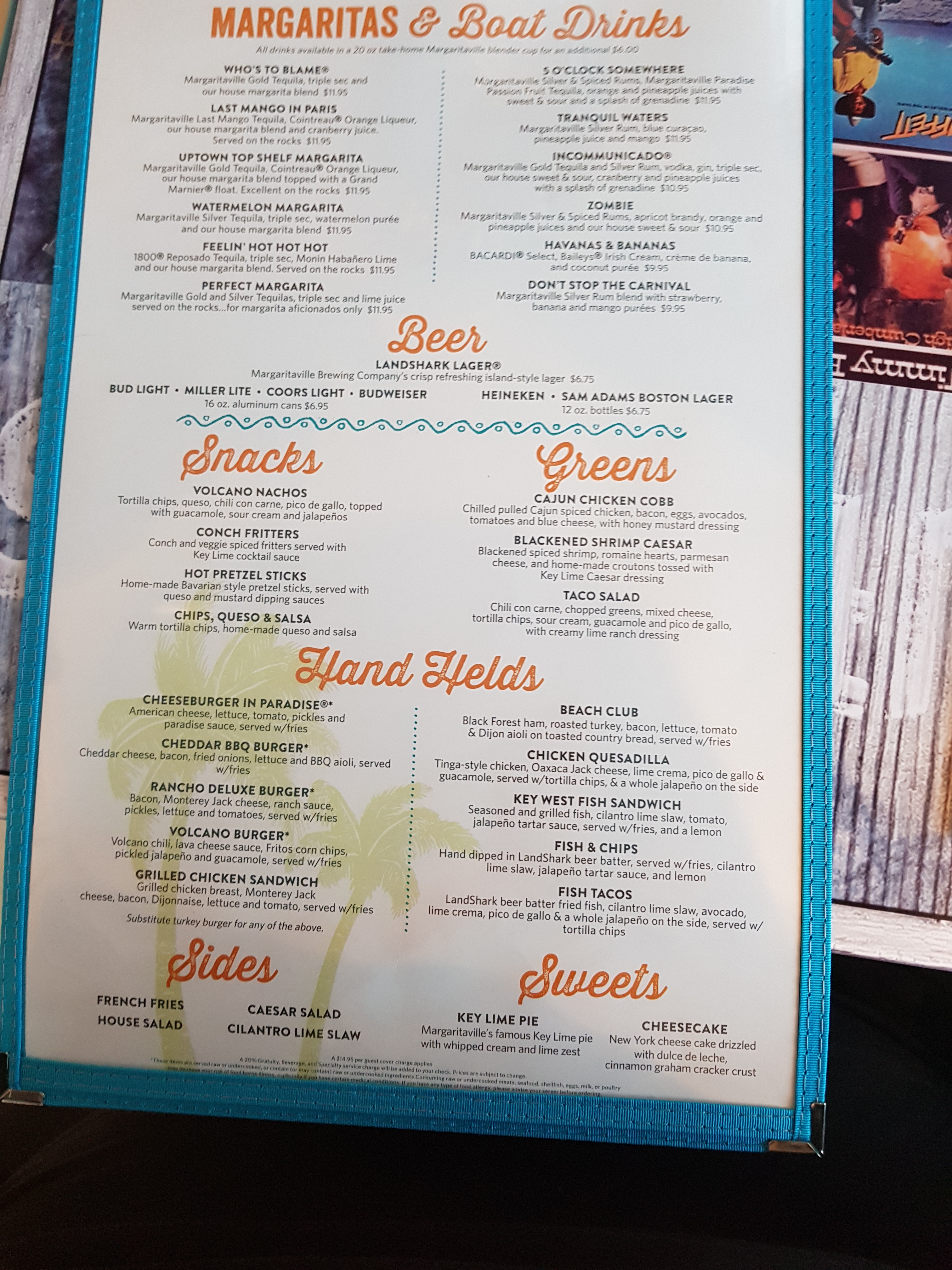 Because we had eaten breakfast early we thought we would try a Margaritaville burger for the first time. It closed at 5pm so we rushed up at 4:15 and were the only food customers. The jogging track around it was covered in water and it was very windy out on deck. But Margaritaville was warmed by heaters and dry inside.